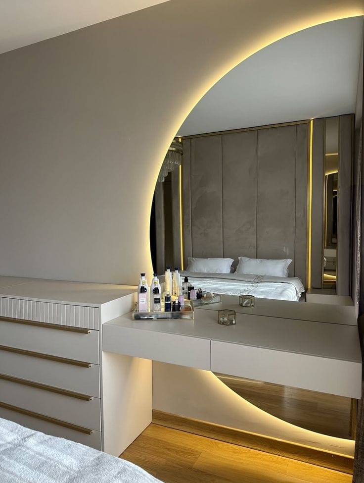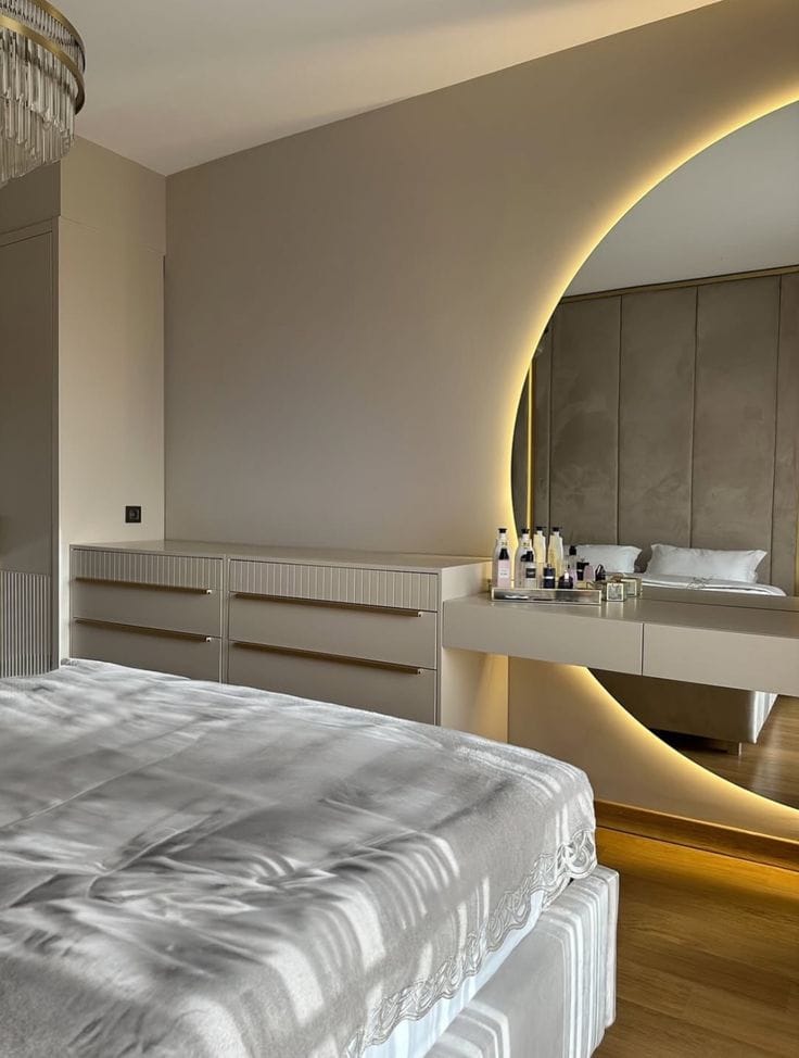 საძინებელში ინტეგრირებულია სარკე კონსოლით და ფუნქციური ტუმბოები, რაც უზრუნველყოფს ყოველდღიური გამოყენების მაქსიმალურ კომფორტს. თითოეული დეტალი შექმნილია ინდივიდუალურად, სივრცის სპეციფიკისა და მომხმარებლის საჭიროებების გათვალისწინებით.